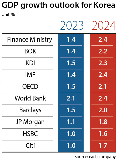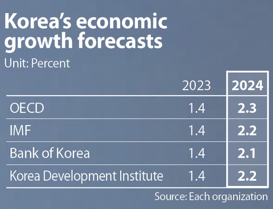 IMF는 한국의 경제 성장률을 2024년 2.2%로 전망했어요.